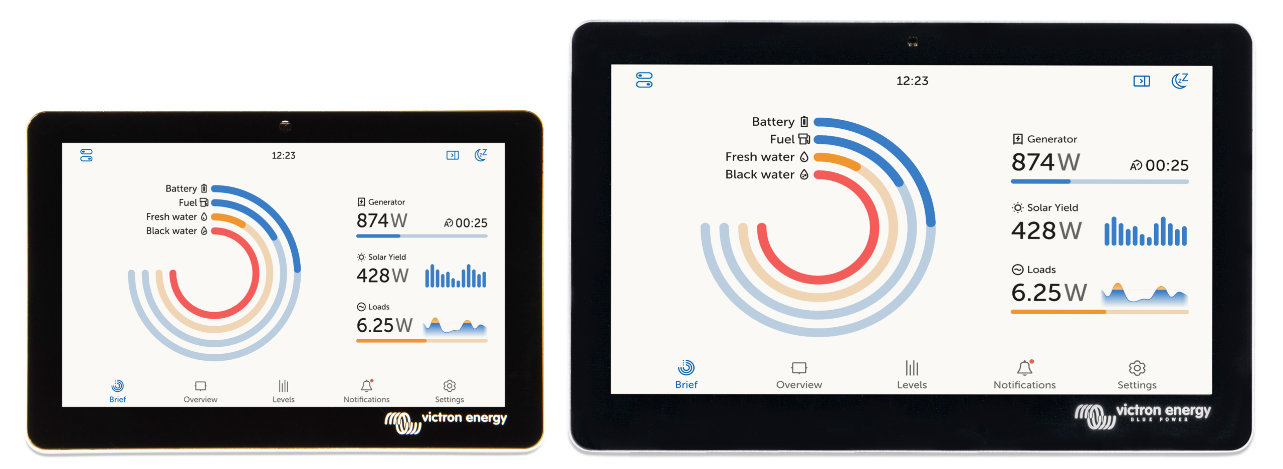 Designed for flexibility, the GX Touch 70 features a slim, lightweight design and flush-mount installation, creating a professional and tidy setup in your campervan, motorhome, boat, or off-grid home. It seamlessly integrates with Victron’s Cerbo GX, providing remote monitoring and system adjustments at your fingertips.