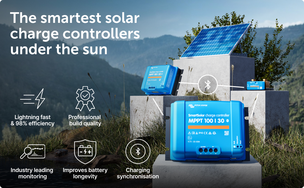 The SmartSolar MPPT 100/30 features built-in Bluetooth connectivity, revolutionizing remote monitoring and control:
